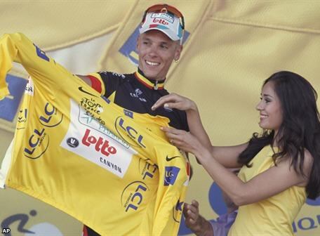 El ciclista belga se adjudicó la casaca amarilla. El campeón vigente, Alberto Contador, perdió más de un minuto debido a un choque.