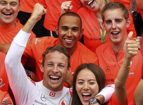 BUDAPEST.- El británico Jenson Button (McLaren) celebró ayer por todo lo alto su participación número 200 en un Gran Premio de Fórmula 1 con una victoria en Hungría, donde superó al alemán Sebastian Vettel (Red Bull), segundo, y al español Fernando Alonso (Ferrari), tercero.