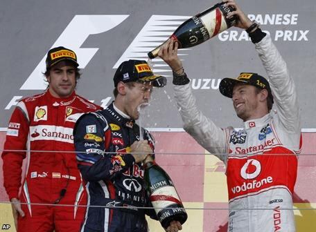SUZUKA, Japón.- El alemán Sebastian Vettel (Red Bull) se proclamó matemáticamente campeón mundial de 2011 de Fórmula 1, sumando su segundo título consecutivo, tras acabar tercero este domingo en el Gran Premio de Japón, donde se impuso el inglés Jenson Button (McLaren).