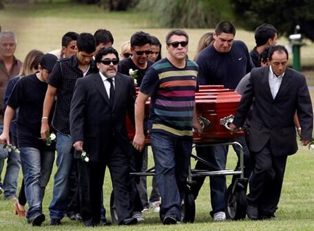BUENOS AIRES, Argentina.- Diego Maradona despidió este lunes los restos de su madre Dalma Salvadora Franco de Maradona, fallecida el sábado a los 82 años por una afección cardíaca.