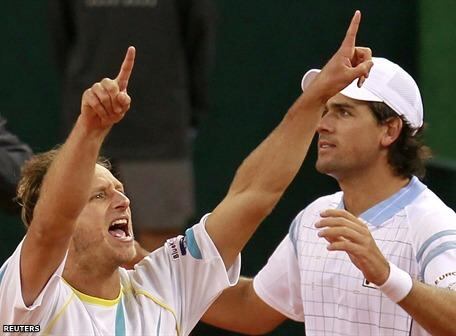 SEVILLA, España.- El dúo argentino formado por David Nalbandian y Eduardo Schwank se impuso ayer con autoridad a los españoles Fernando Verdasco y Feliciano López, 6-4, 6-2, 6-3, ganando el primer punto para su equipo y poniendo así un 2-1 en el global de la final de Copa Davis.