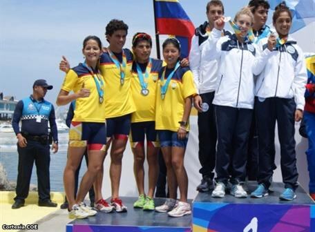 Ecuador consiguió ayer su primera medalla en los II Juegos Sudamericanos de Playa, en Manta 2011. El equipo tricolor, integrado por Elizabeth Bravo, Juan Andrade, Christina Farez y Luiggi Landívar, registró un tiempo de 1 hora 17 minutos y 56 segundos para lograr plata.