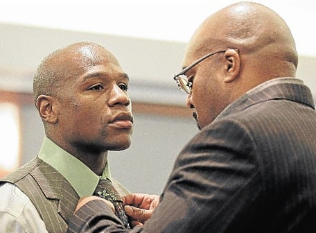 Por violencia doméstica Floyd Mayweather, campeón mundial wélter (i), de 34 años, irá ese tiempo a prisión, pagará una multa de $ 2.500 y cumplirá 100 horas de servicio comunitario.