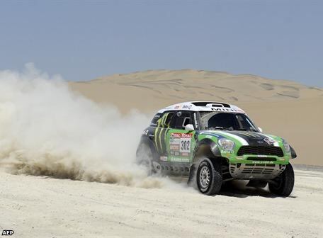 PISCO, Perú.- El piloto francés Stéphane Peterhansel (Mini) se adjudicó este sábado la penúltima etapa del Dakar y está a un paso de obtener su décimo título, mientras que el español Joan Nani Roma (Mini) fue séptimo y mantiene la segunda posición en la clasificación general de autos.
