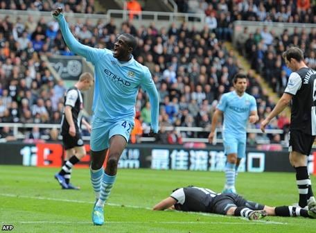 NEWCASTLE, Inglaterra.- El marfileño Yaya Touré anotó dos goles el domingo para dar al Manchester City una victoria de 2-0 sobre el Newcastle como visitante y convertir a su equipo en el firme favorito para obtener el título de la Liga Premier.