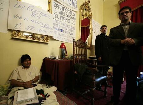 El presidente de Bolivia anunció hoy que continuará con la huelga de hambre iniciada hace más de 24 horas a la espera de que el Congreso apruebe la nueva ley electoral para los comicios del 2009.