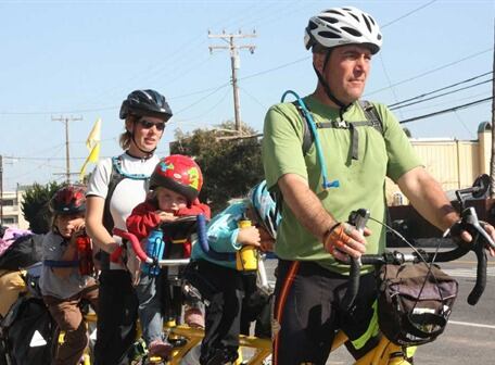 LOS ÁNGELES.- Bill Harrison recorre parte de Estados Unidos junto a su esposa y sus tres pequeñas hijas en una enorme bicicleta tándem de 5 asientos con el objetivo de llegar a Alaska.