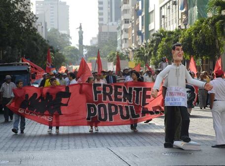 Cerca de 100 manifestantes salieron a las calles de Guayaquil con banderas rojas y carteles.