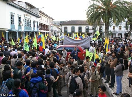 Atendiendo un llamado que hicieran las autoridades locales en esta ciudad, y pasadas las 17h00, alrededor de 500 manifestantes, en su mayoría empleados, trabajadores públicos y estudiantes secundarios se concentraron frente a la gobernación de este provincia, para expresar su respaldo al gobierno del presidente Rafael Correa.