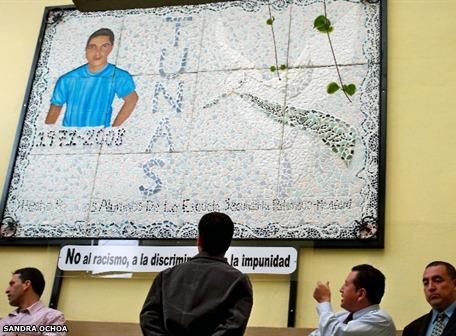 Un mural de cerámica con la fotografía de Marcelo Lucero, el emigrante ecuatoriano que falleció en EE.UU. luego de una golpiza de jóvenes xenófobos en la localidad de Patchogue, fue develado el sábado en el Salón de la Ciudad del edificio municipal de Gualaceo.