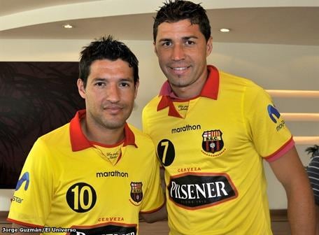 El presidente del Barcelona Sporting Club, Alfonso Harb, presentó al argentino Rodrigo Marangoni y el brasileño Rodrigo Teixeira, nuevos refuerzos extranjeros del club canario.