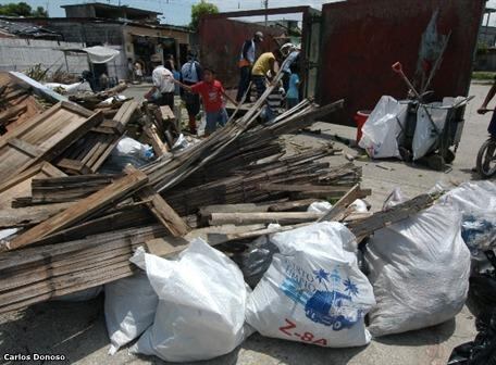El fin de semana los moradores del Guasmo sur, a la altura de La Playita del Guasmo, participaron en una minga de limpieza del estero Salado.