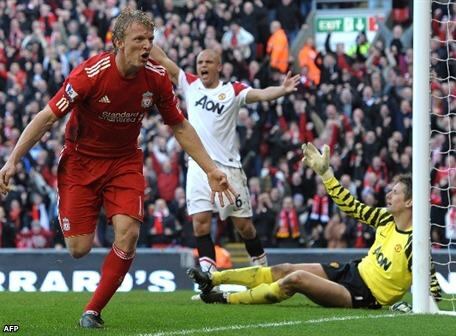 LONDRES.- El Manchester United, líder de la liga inglesa de fútbol, cayó ayer frente al Liverpool (3-1), que se impuso con un triplete del holandés Dirk Kuyt (34 minutos, 39m, 65m), y de nada le sirvió un gol en el tiempo de descuento (90+2) del mexicano Javier Chicharito Hernández.