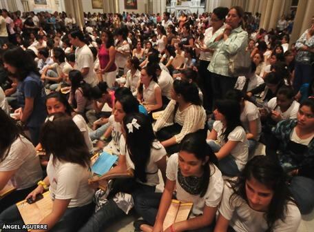 Con entusiasmo y devoción cientos de jóvenes se concentraron el pasado jueves en la Catedral, a las 19:00, para participar en la misa de promesas de castidad que se efectuó en el marco de la semana de la familia que concluye mañana.