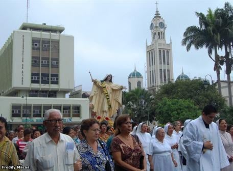 .- Hoy es el día central de la Virgen de la Merced, por lo que su imagen encabeza procesiones en al menos ocho ciudades del país. En Portoviejo se espera unos 30 mil feligreses en la caminata nocturna que recorrerá las calles Bolívar, Rocafuerte, Ramos Iduarte, Chile y otras de la capital manabita.