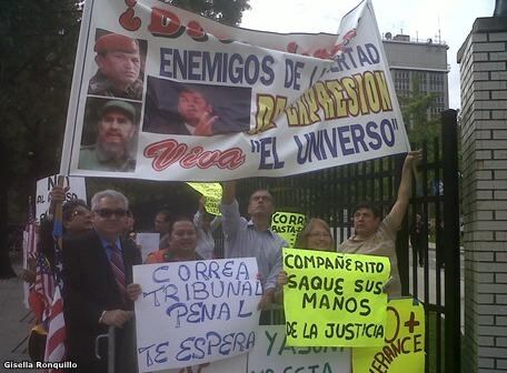 No eran muchos, pero gritaban fuerte. Unos 30 ecuatorianos residentes en diferentes lugares de Estados Unidos protestaron ayer en las afueras del Queens College, desde donde el presidente Rafael Correa emitió su enlace sabatino.