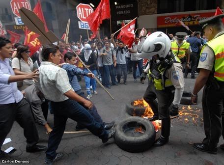 Los estudiantes y la policía se enfrentaron ayer con piedras y bombas lacrimógenas en una nueva jornada de protestas contra el bachillerato unificado y en favor de una compensación económica por el incremento de la jornada laboral dispuesta para los docentes.