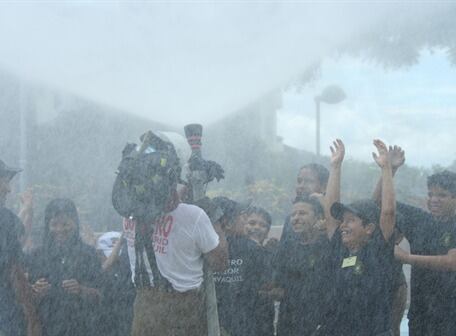 Carlos Alberto Mieles (7 años) escucha atento la explicación de cómo enlazar las mangueras en la trifurcadora (accesorio que divide una fuente de agua en tres direcciones), luego corre junto a sus 37 compañeros en una actividad lúdica con otros niños del curso vacacional júnior que imparte el Cuerpo de Bomberos de Guayaquil.
