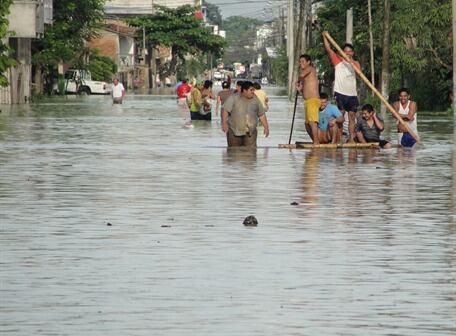 CHONE, MANABÍ.- Las gigantografías colocadas en distintas zonas de Chone con la frase "Nunca más", sobre una foto donde se ve la ciudad inundada y gente que sale en botes, se convirtieron en añoranza, ayer, pues un 80% de la ciudad manabita amaneció bajo el agua, tras una intensa lluvia caída desde la tarde del jueves y que se extendió hasta la madrugada de este viernes.