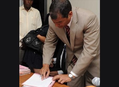 El presidente Rafael Correa pide como ciudadano $ 80 millones y tres años de cárcel para los directivos de este Diario (Carlos, César y Nicolás Pérez) y para el entonces editor de Opinión (Emilio Palacio), por supuestas injurias por el artículo de Palacio 'No a las mentiras'.