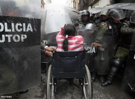 LA PAZ.- Unos 150 discapacitados iniciaron ayer una huelga de hambre a la intemperie en los alrededores de la Plaza de Armas de La Paz, sede del poder Ejecutivo y Legislativo, para presionar a los congresistas a que aprueben una ley de subsidios.