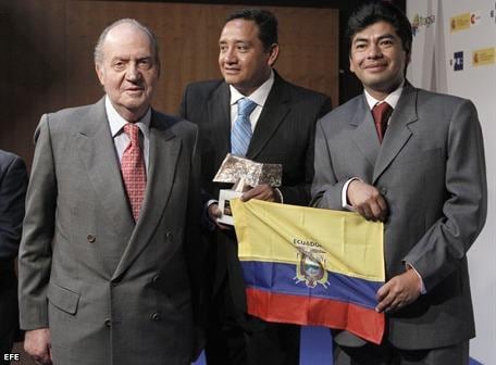 MADRID, España.- El boliviano Fernando Molina, el brasileño Wilton Júnior, los mexicanos Dalia Martínez y Humberto Padgett, los argentinos Alberto Recanatini y Pablo Loscri, y los ecuatorianos Hernán Higuera y Antonio Narváez recibieron hoy de manos del rey Juan Carlos los Premios Internacionales de Periodismo Rey de España.