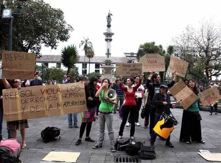 QUITO.- Ambientalistas ecuatorianos protestaron este viernes frente a los príncipes de Asturias en Quito para denunciar la supuesta contaminación de una reserva amazónica por parte de la petrolera española Repsol, constató un periodista de la AFP.