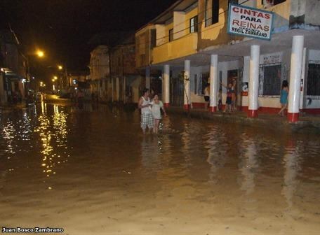 Las fuertes lluvias de la tarde y noche del sábado inundaron la parte céntrica de Flavio Alfaro y otros sectores. La unión de los ríos Rancho, San Pablo y Pescadillo creció simultáneamente y provocó el desbordamiento.