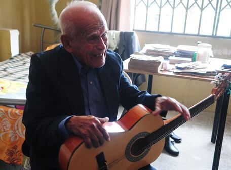 Desde una pequeña habitación de la precooperativa Colinas de la Alborada sale una melodía que atrae la atención de las pocas personas que transitan por la calle José Cajamarca.