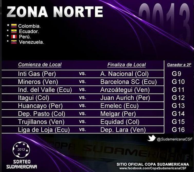 Los toreros se enfrentarán ante Mineros, los eléctricos lo harán ante Sport Huancayo, LDU (L) se medirá ante el Deportivo Lara e Independiente rivalizará ante Deportivo Anzoátegui.