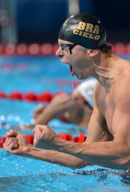 El brasileño César Cielo entró en la leyenda este sábado en Barcelona 2013 al convertirse en el primer nadador que gana tres oros en la prueba de los 50 metros libres en mundiales.