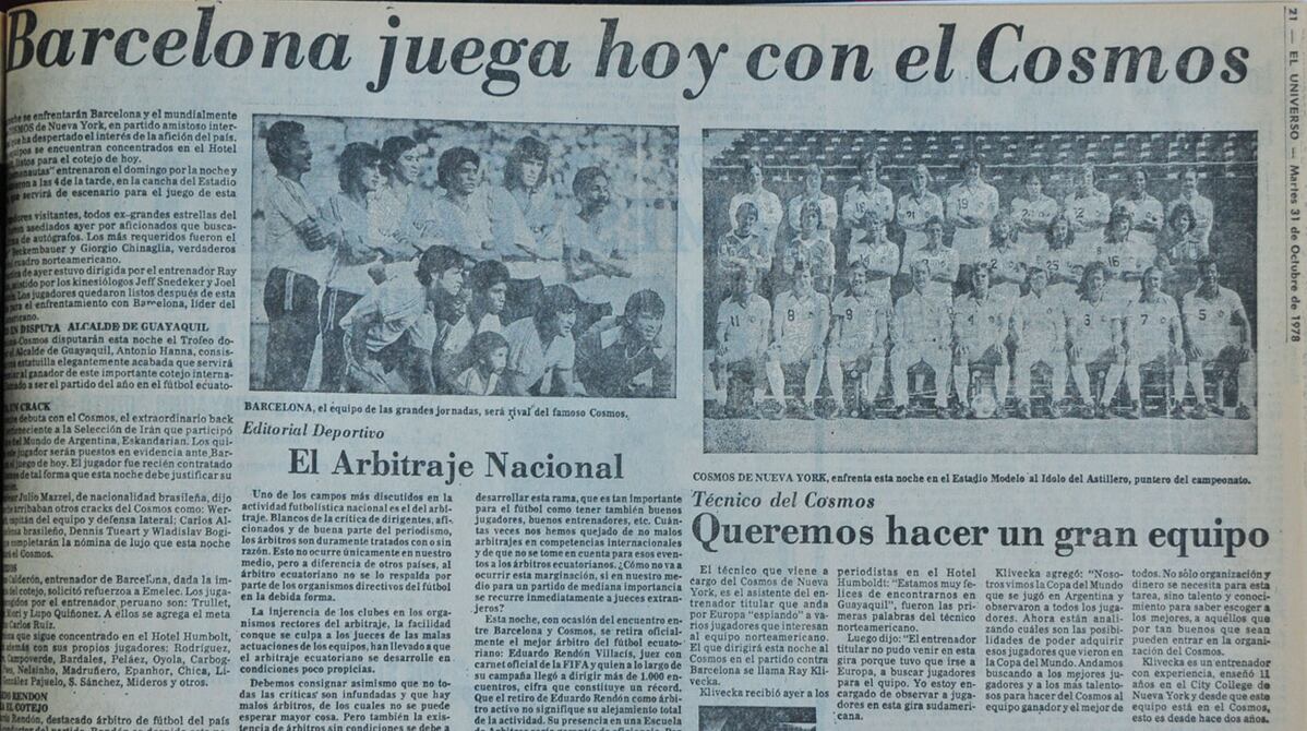 Este Diario anunció la llegada del Cosmos y reseñó el duelo que acabó 1-1, también los incidentes al final del partido.