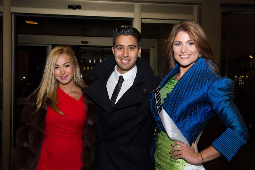 MOSCÚ. Christian Noboa (c), volante del Dínamo de Moscú, y su esposa rusa Olga Romanova (i), junto a la representante de Ecuador en el concurso Miss Universo, Constanza Báez, durante la gira del presidente Rafael Correa a Rusia.