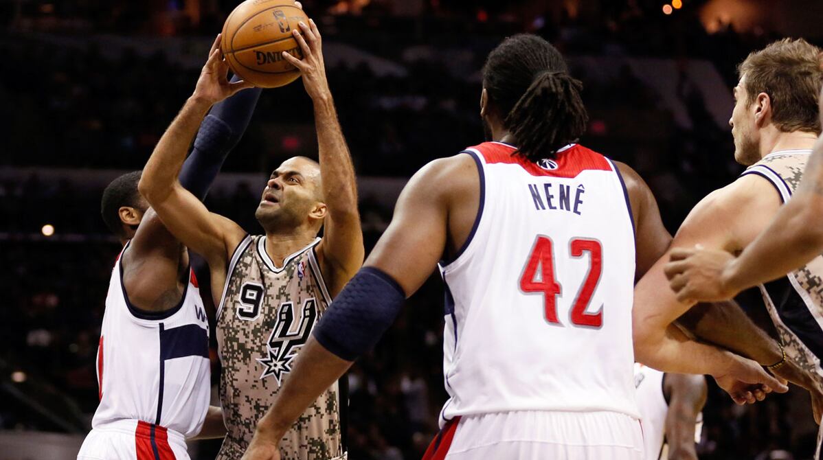 Tony Parker sumó 16 puntos, para encabezar a seis jugadores de los Spurs que anotaron al menos 10 unidades, el miércoles en la victoria por 92-79 sobre los Wizards de Washington, la sexta consecutiva para San Antonio, en la NBA.