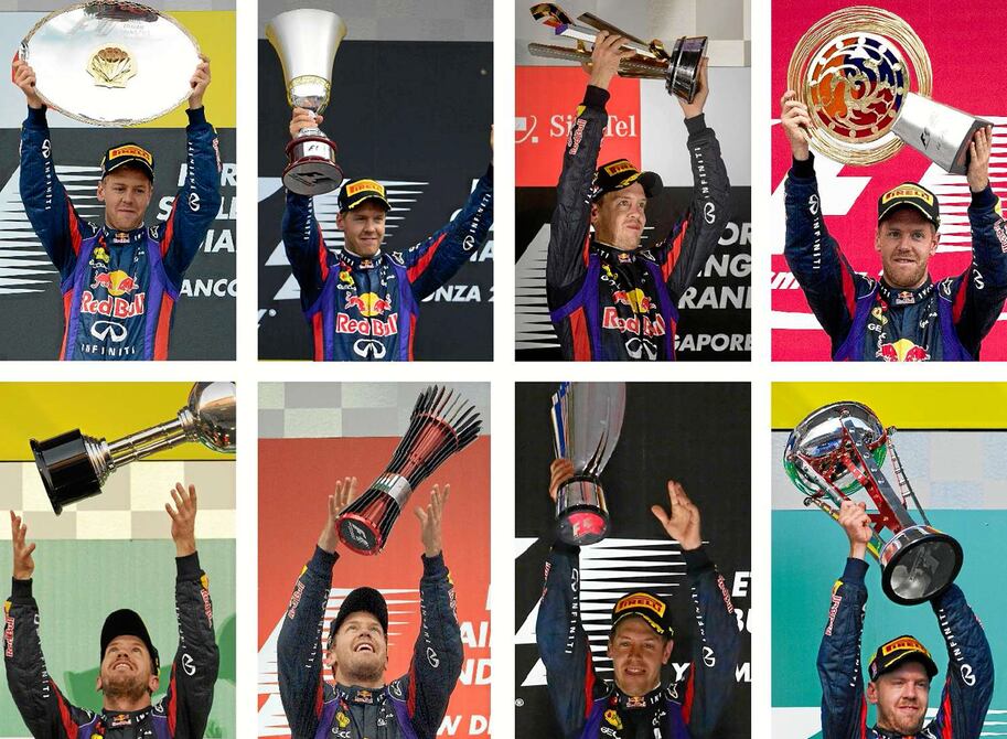 Sebastian Vettel salió de su bólido Red Bull, batió un puño en el aire y luego mostró ocho dedos, uno por cada una de sus victorias consecutivas en la Fórmula 1. No hay quien pueda terminar con el dominio del joven alemán en las pistas.