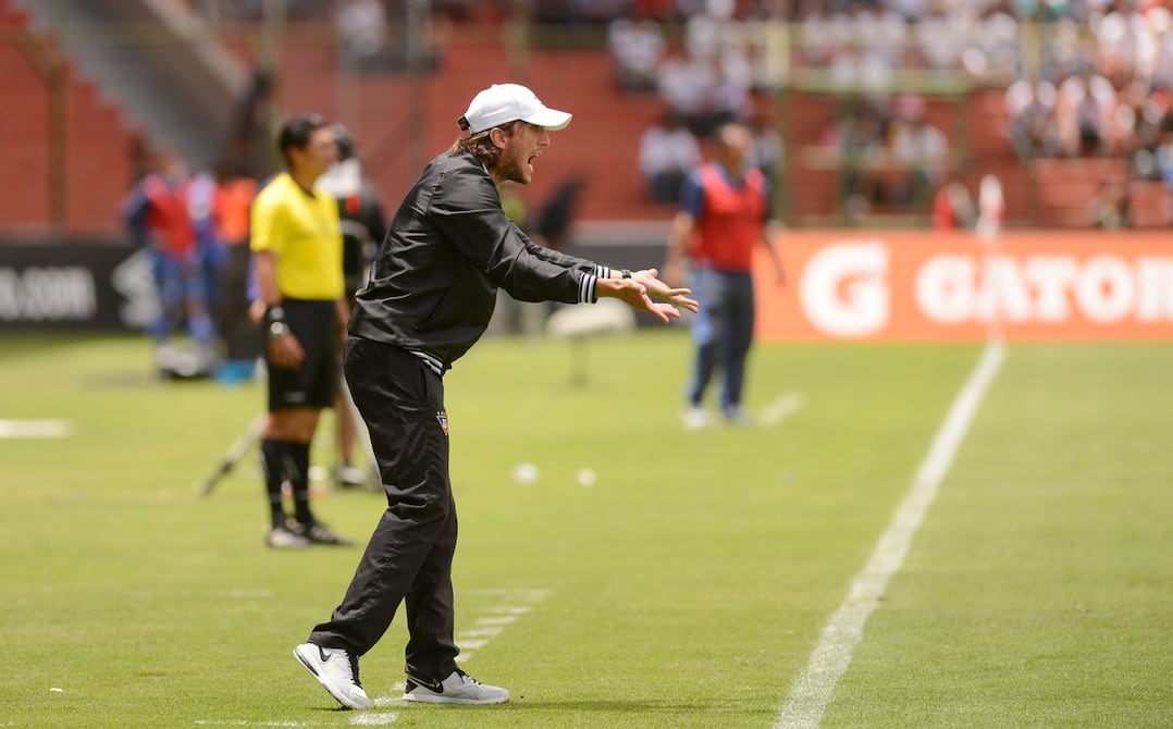 En medio de la preocupación porque los triunfos no llegan para Liga de Quito, el técnico albo, Luis Zubeldía.