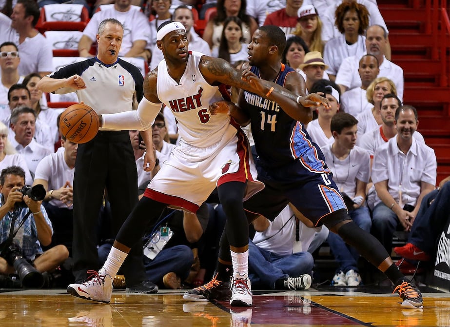 LeBron James anotó 27 puntos, Dwyane Wade agregó 23 y el Heat de Miami fue imparable en una embestida cerca del cierre para derrotar este domingo 99-88 a los Bobcats de Charlotte, en el primer duelo de su serie de primera ronda de la Conferencia del Este.