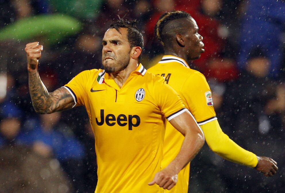 Juventus le ganó 3-1 al Sassuolo este lunes luego de remontar un marcador adverso con la ayuda de un gol del argentino Carlos Tévez y quedó a un paso de alzarse con su tercer scudetto consecutivo en la Serie A.
