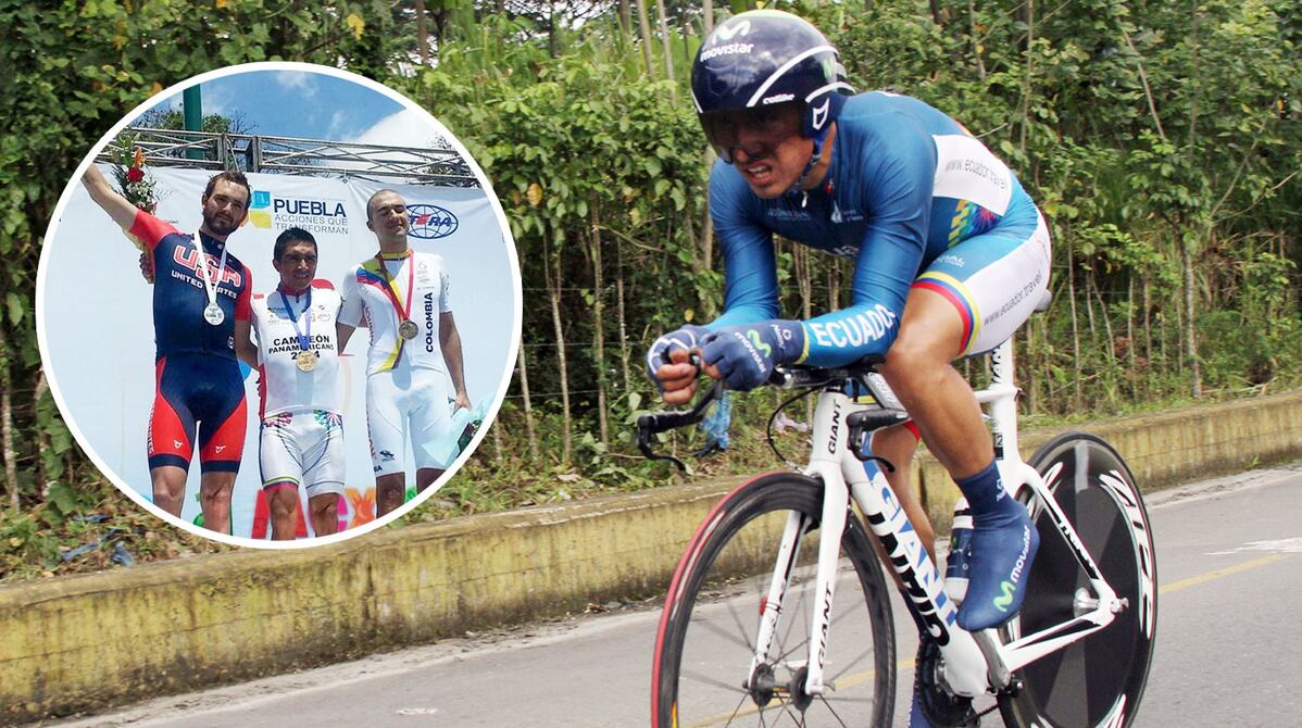El ciclista ecuatoriano (c) se colgó la medalla de oro en la prueba de ruta élite del Campeonato Panamericano de Ciclismo el pasado domingo en México, y aseguró su boleto a los Juegos Panamericanos del 2015, en Toronto (Canadá).