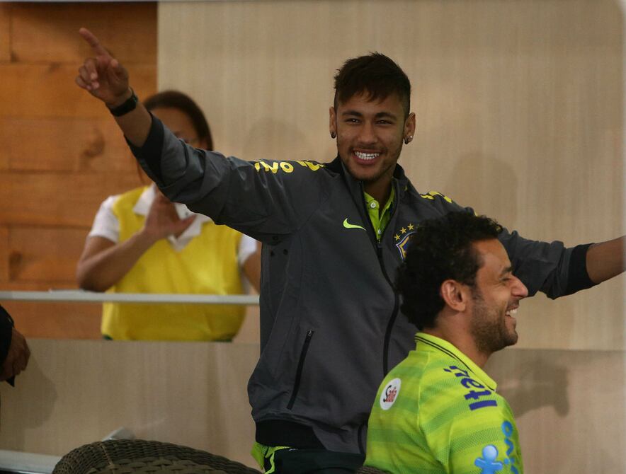 Neymar, estrella de la selección brasileña, se divirtió hoy jugando a los videojuegos y bromeando con sus compañeros de equipo en el inicio de la concentración para el Mundial.