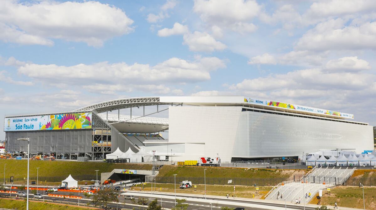 Andamios, máquinas que van y vienen, obreros que trabajan a destajo, actividad frenética. En el Arena Corinthians de Sao Paulo se apuran los minutos antes de la inauguración del Mundial 2014, mañana, “con muchas cosas aún por terminar”.