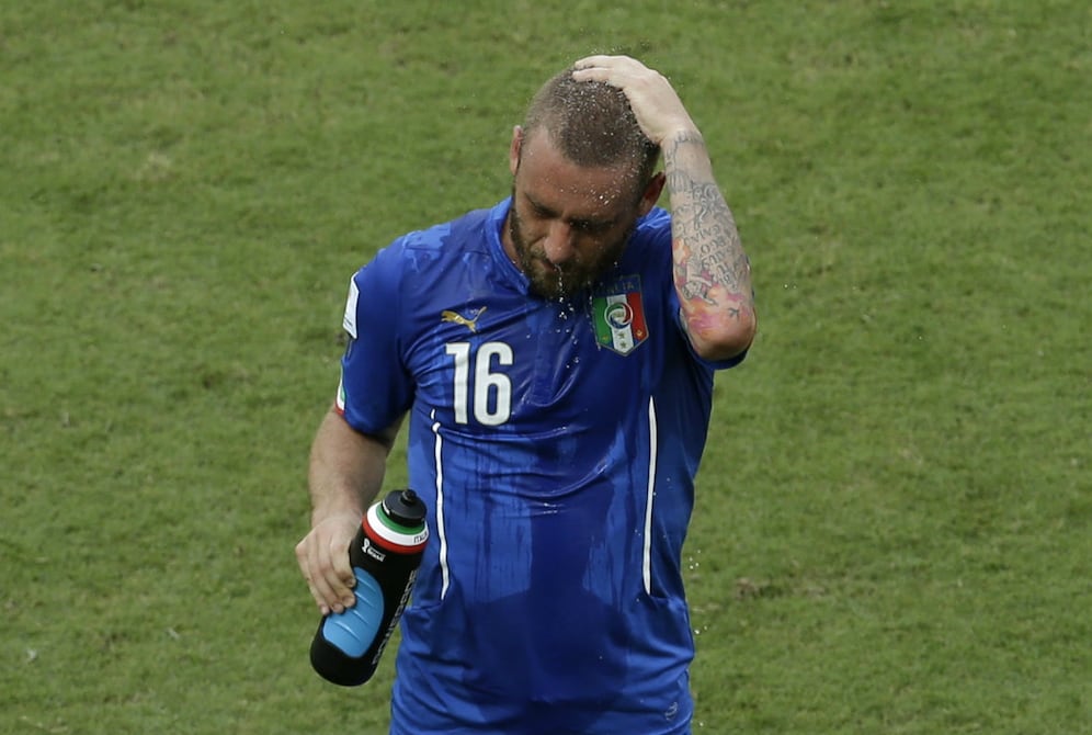 El volante italiano Daniele De Rossi "probablemente" se pierda el partido del martes contra Uruguay que definirá el segundo boleto del Grupo D a los octavos de final de la Copa del Mundo.