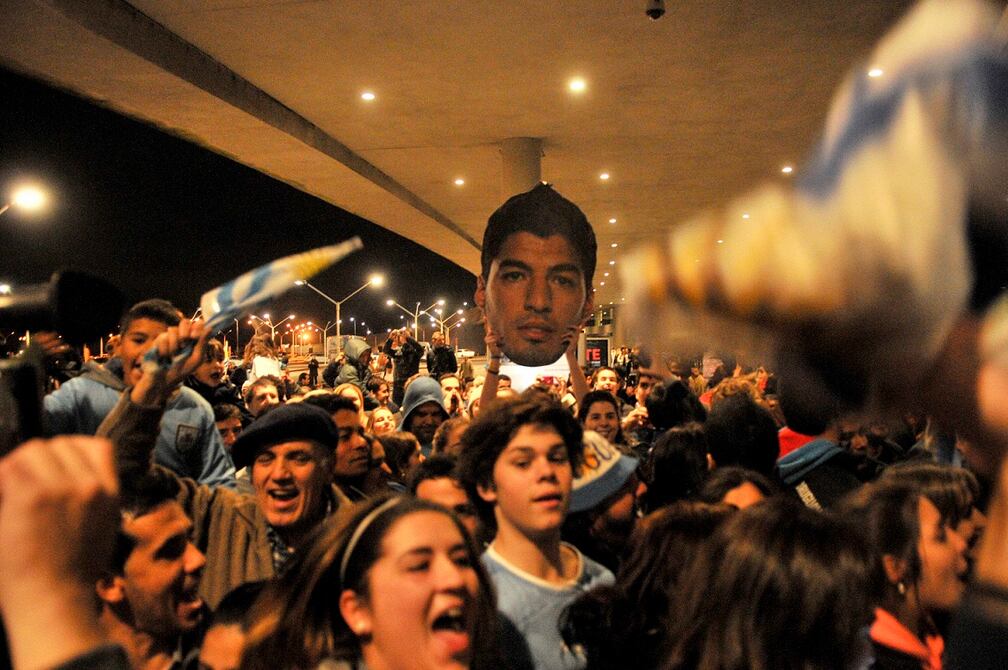 El presidente de Uruguay, José Mujica, se retiró esta noche del aeropuerto donde esperaba al futbolista Luis Suárez, debido al retraso del vuelo que lo traslada desde Brasil.