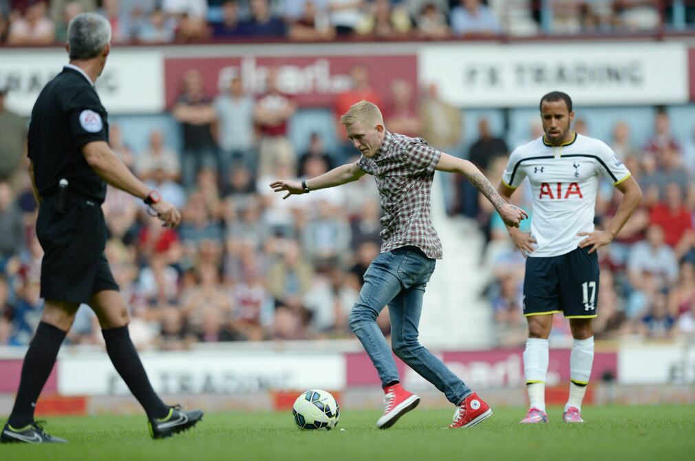 Un fanático entró a la cancha durante el partido de este sábado entre West Ham United y Tottenham y pateó un tiro libre, antes de ser atrapado por el personal de seguridad.