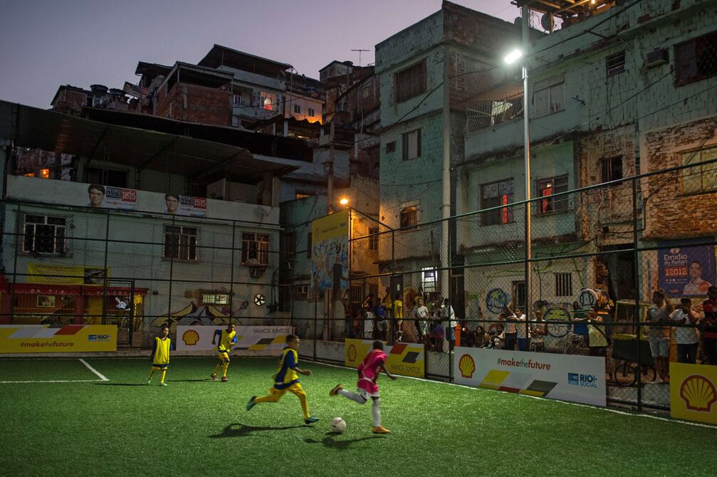 La primera cancha de fútbol del mundo iluminada por la energía generada por el movimiento de los jugadores fue inaugurada en la favela Mineira, en el centro de Rio de Janeiro, constató la AFP.