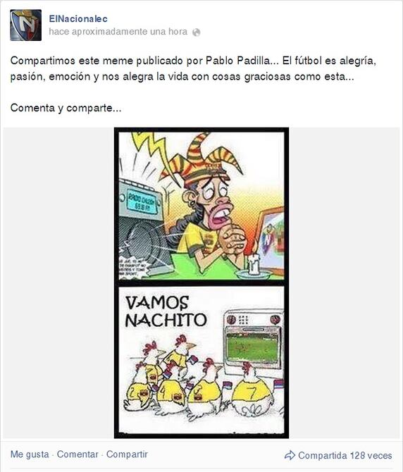 El Club Deportivo El Nacional publicó en su cuenta de Facebook un meme en el que se burla del Barcelona Sporting Club.