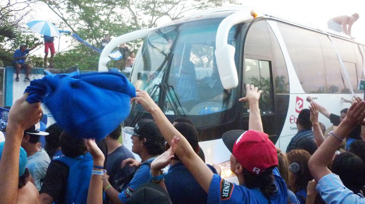 Aunque no pudieron ir al Monumental a apoyar a su equipo, los hinchas de Emelec buscaron la manera de hacer sentir su respaldo al plantel que adiestra Gustavo Quinteros.