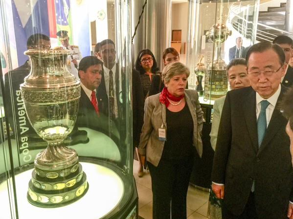 El secretario general de la ONU, Ban Ki-moon, visitó este miércoles el Museo del Fútbol de la Confederación Sudamericana de Fútbol (Conmebol), como parte de su agenda en la visita oficial que hace a Paraguay.