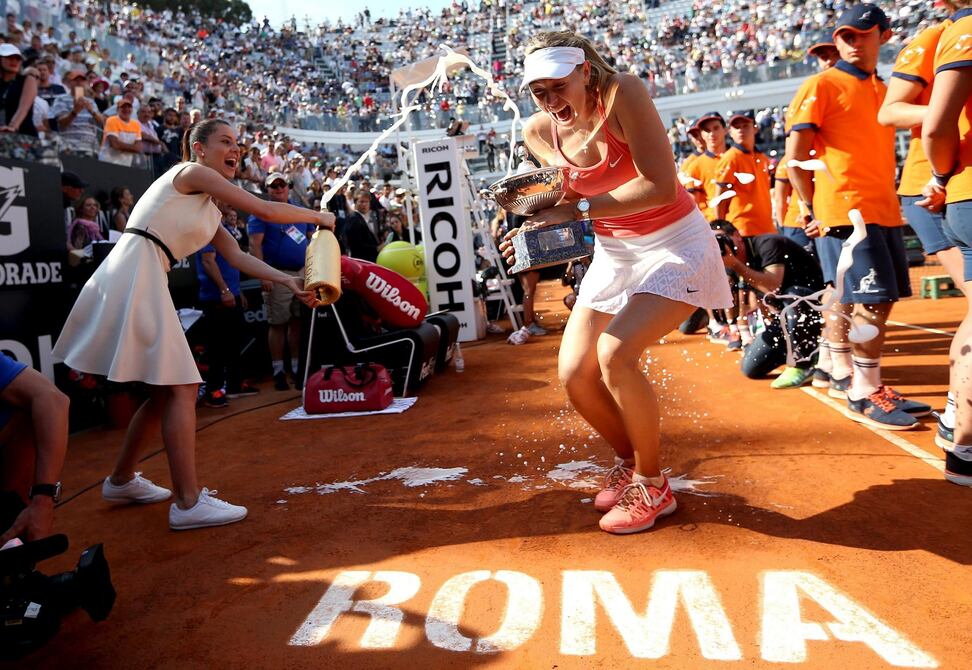 La rusa Maria Sharapova vino de atrás para imponerse a la española Carla Suárez Navarro este domingo por 4-6, 7-5 y 6-1 y obtener su tercer título del Masters de Roma.