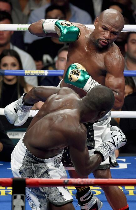 El estadounidense Floyd Mayweather Jr. entró el sábado a la historia del boxeo al ganar al haitiano-estadounidense Andre Berto y retuvo sus títulos del Consejo Mundial de Boxeo (CMB) y de la Asociación Mundial de Boxeo (AMB), además de igualar el récord invicto de 49-0 de su legendario compatriota Rocky Marciano.